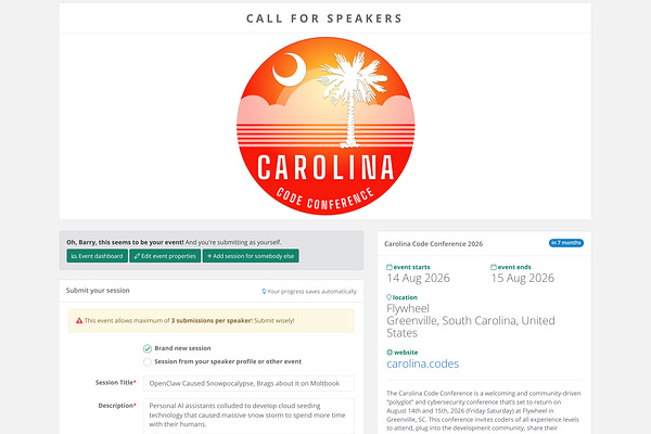 Home of the Carolina Code Conference, the polyglot and cybersecurity conference for all who code, on August 14th and 15th, 2026 @ Flywheel Coworking in Greenville, SC! Subscribe here to be the first to know as things develop!