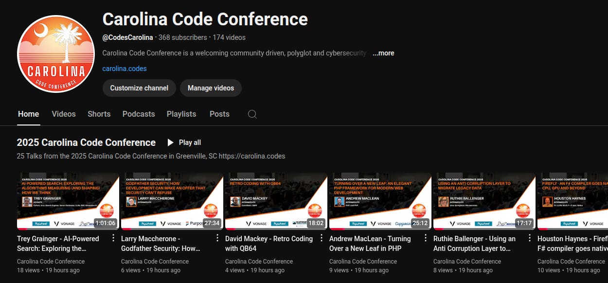 Home of the Carolina Code Conference, the polyglot and cybersecurity conference for all who code, on August 15th and 16th, 2025 @ Flywheel Coworking in Greenville, SC! Subscribe here to be the first to know as things develop.