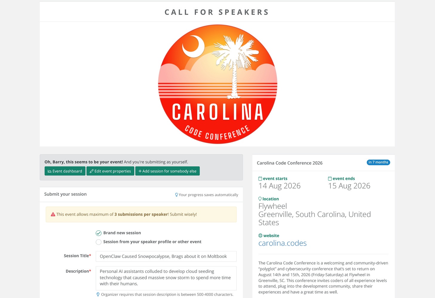Looking for something to do during the Southern Snowpocalypse of 2026? You may want to put together a conference talk.